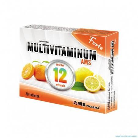 Multivitaminum AMS Forte to zestaw 12 optymalnie dobranych witamin, skomponowanych specjalnie dla osób, które pragną wzmocnić naturalną odporność organizmu. Polecana w stanach zwiększonego zapotrzebowania na witaminy, w okresie przesilenia wiosennego, a także w okresie wzmożonego wysiłku fizycznego i umysłowego. Wskazana jest w przypadku mniejszego spożycia naturalnych źródeł witamin oraz dla osób prowadzących aktywny tryb życia.